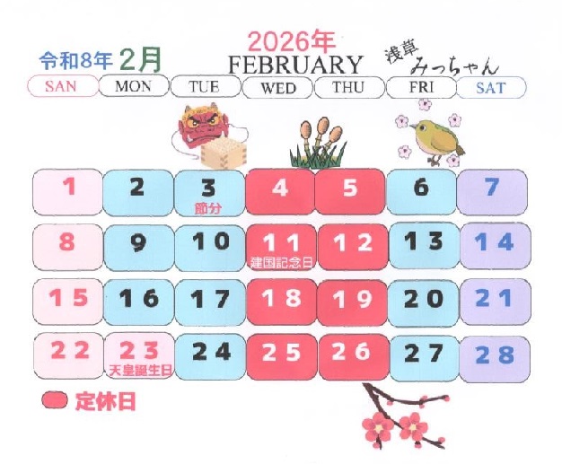 令和8年2月カレンダー更新