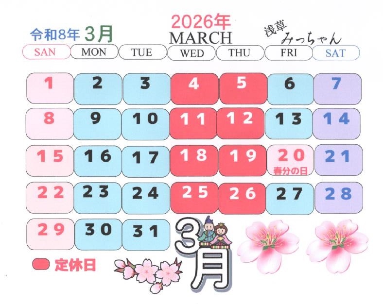 令和8年3月カレンダー更新